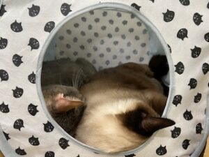 スタッフがバタバタとしている間も、病院猫のぎんとしーはいつも通りまったりとお昼寝です。