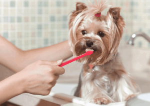 犬専用の歯ブラシや歯みがきペーストを使って、優しく歯と歯茎をマッサージするように磨いてあげるのがポイントです。