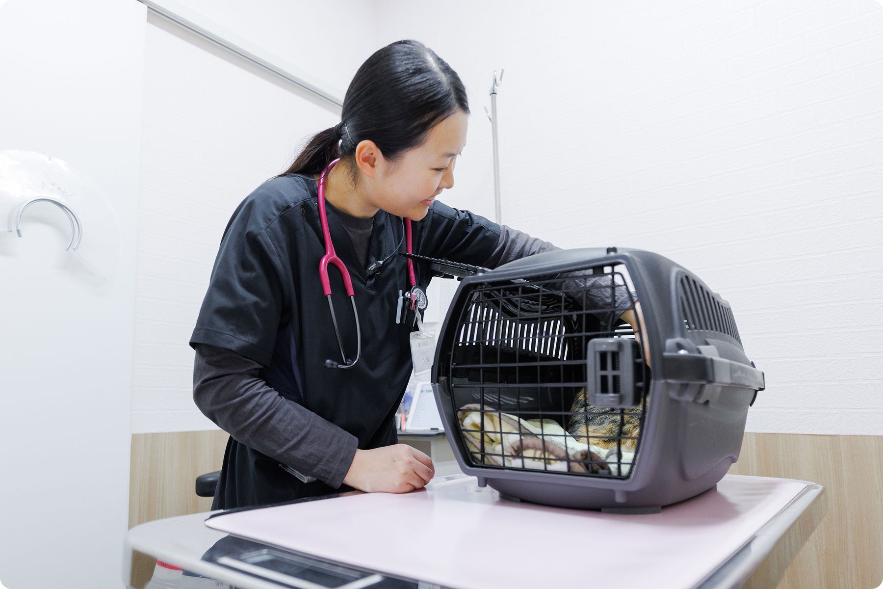 犬猫を中心に診療にあたっており、経験のない症例は先輩に相談しながら進めています。入院患者の治療や処置、エコーなどの検査業務も行っています。手術では犬猫の去勢避妊手術をメインで行っており、その他の手術では助手に入ることが多いです。