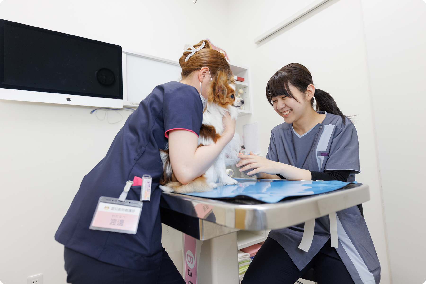 一般診療だけでなく高度な医療にも対応していて、愛玩動物看護師としてさまざまな業務を任せてもらえるので、幅広く知識や技術を学ぶことができます。