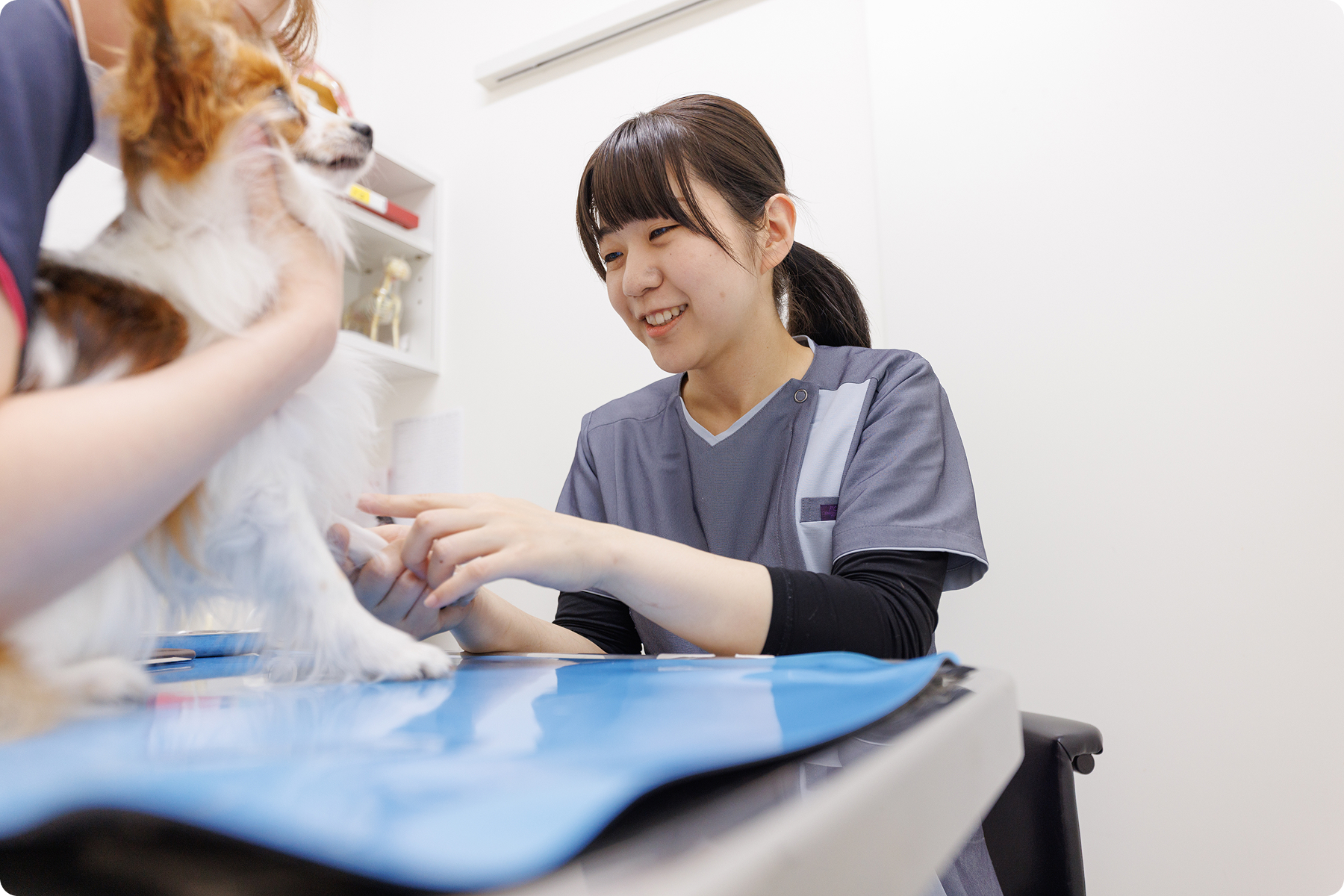 愛玩動物看護師として様々なことにチャレンジさせてもらえるので、実践を通してしっかりスキルが身につきます。先輩看護師はもちろん獣医師や受付スタッフ、トリマーさんも優しい方ばかりで、分からないことがあればすぐに相談できる環境です。