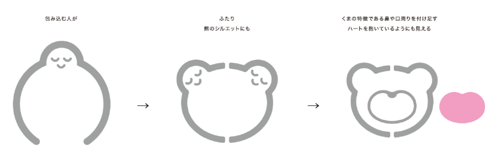 一見するとシンプルなくまのお顔ですが、実は2人の人がハートを包み込む形になっています♡