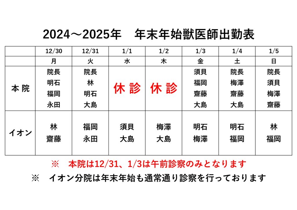 年末年始の診察についてお知らせします。