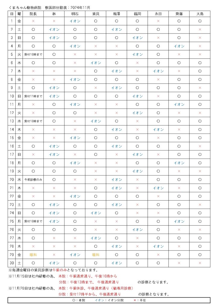 11月分の診察予約が開始になりましたのでお知らせいたします。