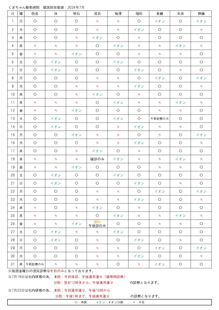 7月分の診察予約が開始になりました♪